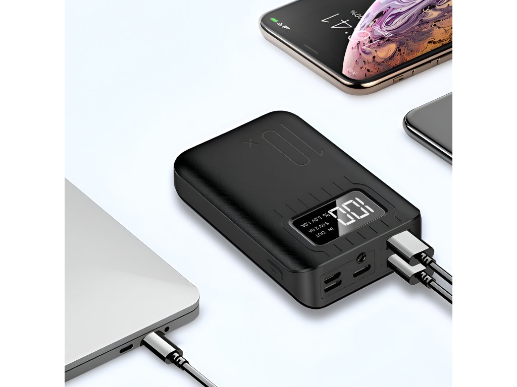 Digitální LED displej vám okamžitě ukáže zbývající kapacitu powerbanky, takže máte vždy přehled o stavu nabití. Integrovaná LED svítilna se hodí pro orientaci ve tmě nebo při nouzových situacích.