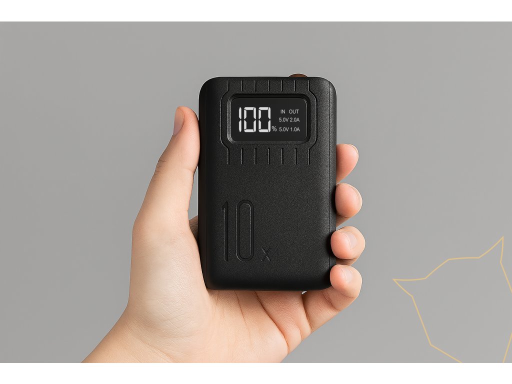 Digitální LED displej vám okamžitě ukáže zbývající kapacitu powerbanky, takže máte vždy přehled o stavu nabití. Integrovaná LED svítilna se hodí pro orientaci ve tmě nebo při nouzových situacích.