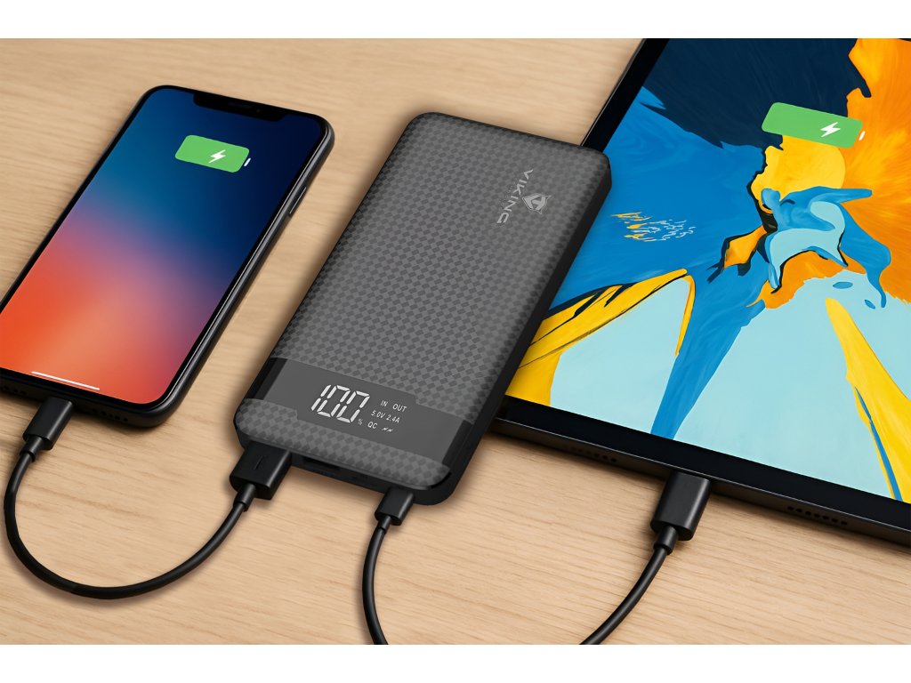 Powerbanka Viking PN-961PD 10000 mAh podporuje rychlé nabíjení PD 3.0 (Power Delivery) a QC 3.0 (Quick Charge), takže kompatibilní zařízení – jako jsou telefony nebo tablety – nabijete výrazně rychleji než běžnou nabíječkou. Funguje s Androidem i Apple zařízeními, pokud podporují rychlonabíjení.