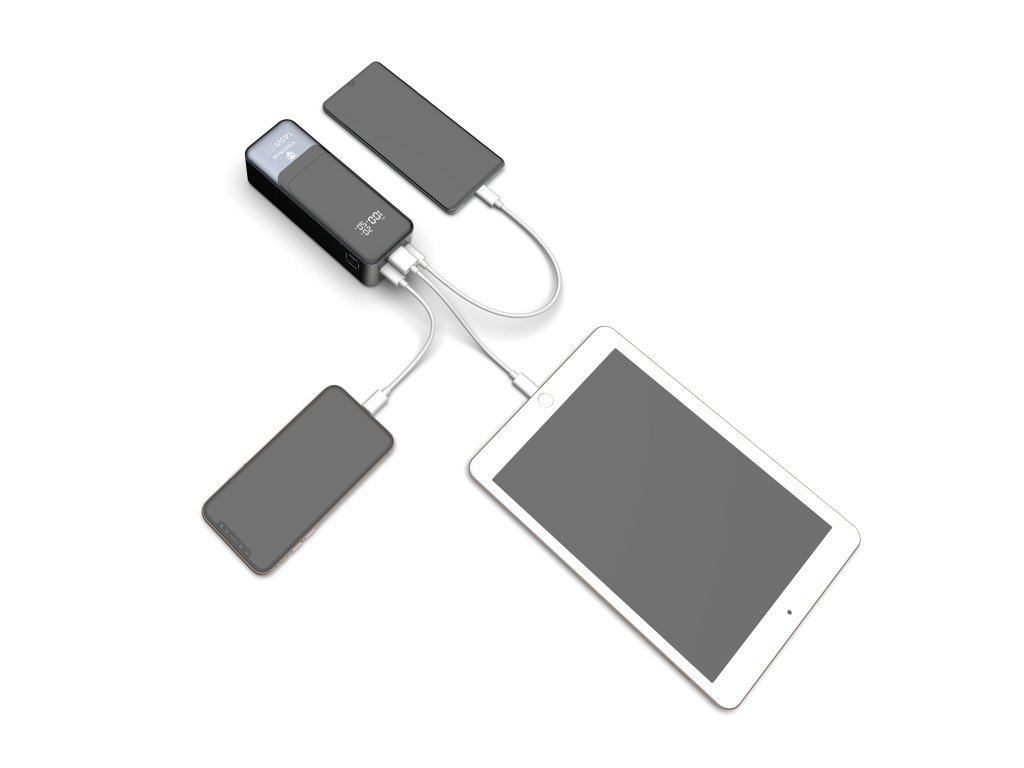 1x výstupní USB-A port a 2x USB-C Vám zajistí nabíjení až 3 různých zařízení současně! USB-A port podporuje rychlonabíjení podle standardu QC s maximálním výkonem 60W. Dva USB-C porty slouží jako vstup i výstup a každý podporuje rychlonabíjení PD s maximálním výkonem 145W.