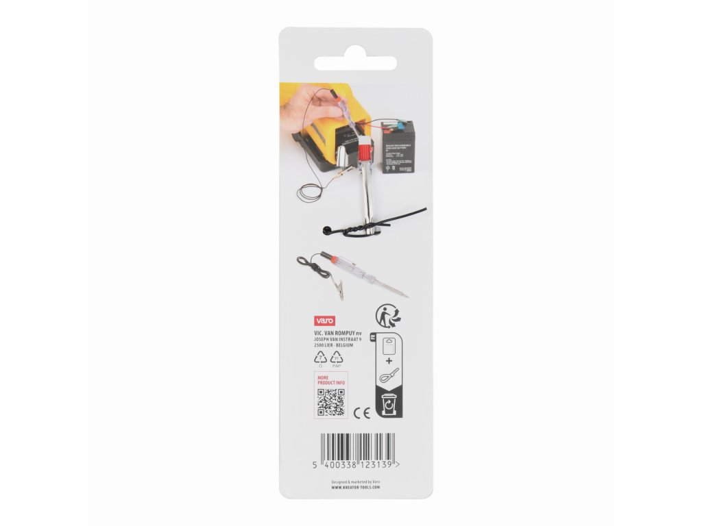 Zkoušečka napětí VOLT TESTER 6-12V DC 135mm. Tento voltmetr KRTH21902 značky Kreator (DC 6-12V) kontroluje napětí baterie. Je vybaven kontrolkou, která okamžitě indikuje detekci napětí. Přístroj má délku 135 mm., Měřící rozsah - DC 6-12V, Délka - 135 mm, Hmotnost - 0,02 kg...